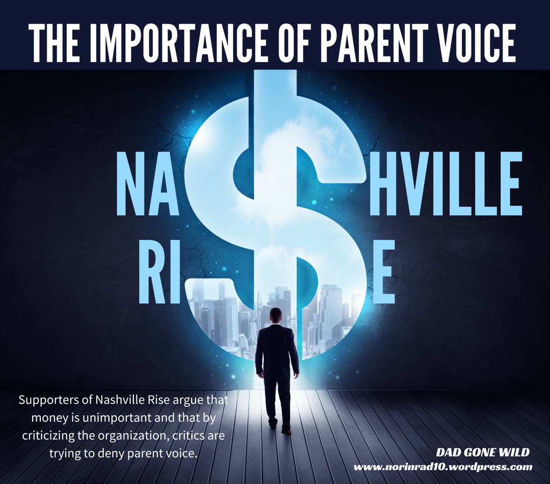 It is extremely important that groups that court parents operate in a transparent manner. Parent voice is only effective when parents have a complete picture and are left to make up their own mind. Imagine if a drug company had a product that had shown limited success financed the founding of a support group for cancer patients? What if they had a product they believed was effective despite its limited results in a controlled environment? A product that they had only been able to get limited approval on from the FDA. Wouldn’t it be vital that members of that support group were fully aware of the company’s vested interest and the amount of financial investment in the support group? Or would we just let people absorb the biased information under the guise of “supporting cancer victims” until they started to die off? It is in this interest of full disclosure that pseudo-grassroots groups like Nashville Rise need to be honest with parents and the community about their true intentions and purpose. Where the money comes from matters.
