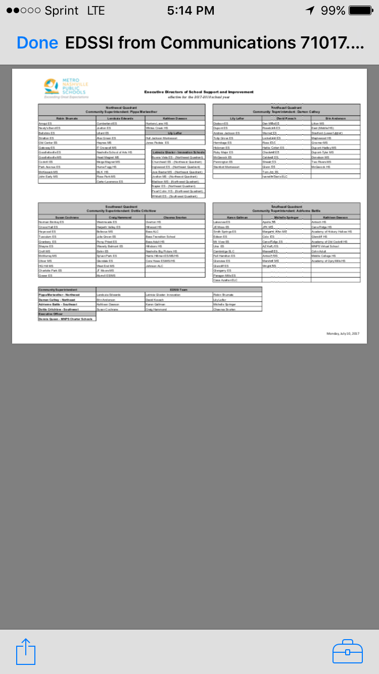 If you look at the assignments of the EDSSI’s you will see that the Executive Director of Innovation Schools Letrecia Gloster – that’s right innovation schools not L5 schools – has all priority schools assigned to her under the Northwest quadrant. Under the revised assignments that came out this week Hunter’s Lane and White’s Creek which were previously in the southeast quadrant are back in the northwest quadrant with their feeder schools. Still, the northwest quadrant is under staffed as they only have 2 official EDSSIs.