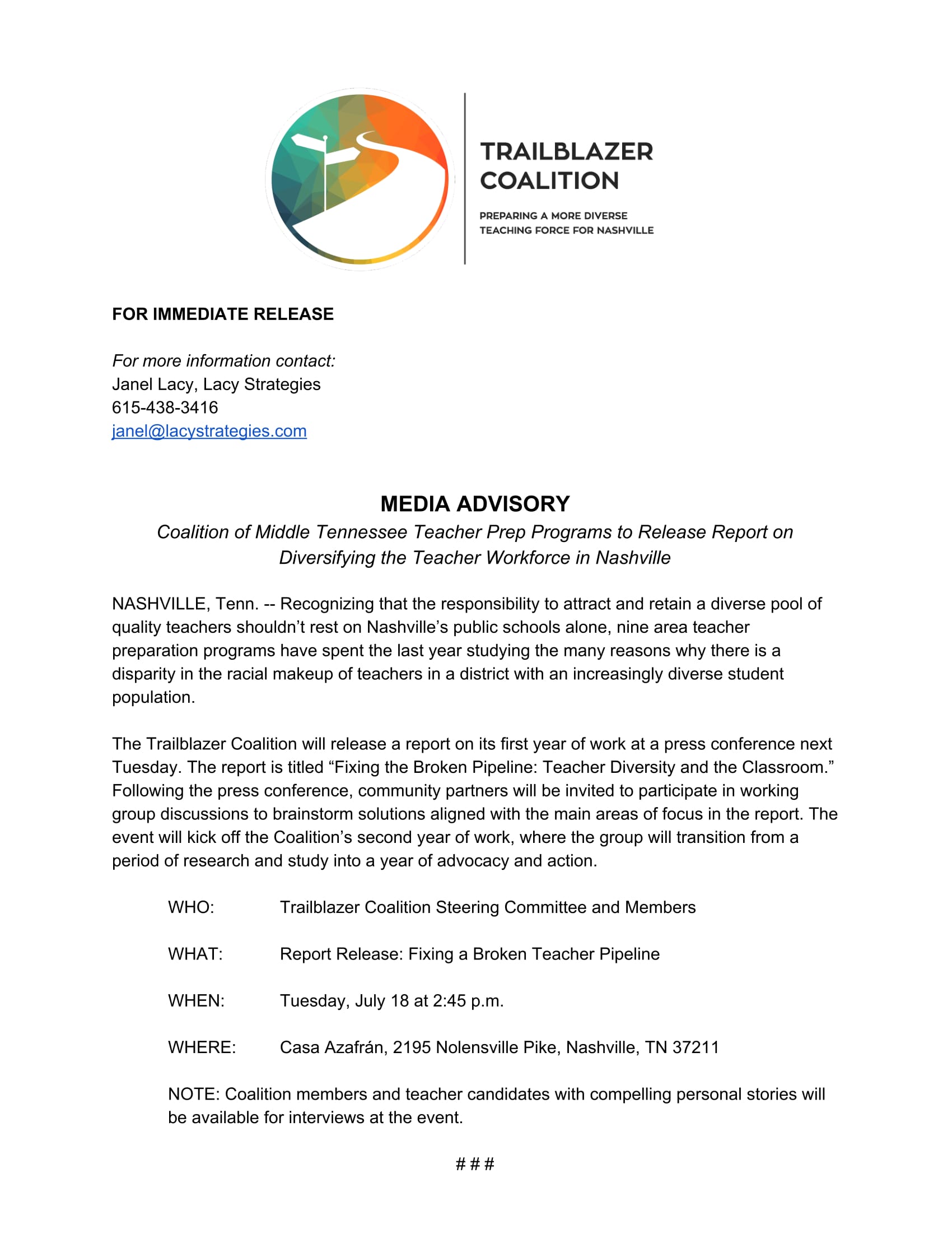 There is a new coalition in town. This ones called the Trailblazer Coalition and their tagline is: Preparing a more diverse teaching force for Nashville. The Trailblazer Coalition is a group of nine teacher preparation programs in Middle Tennessee working