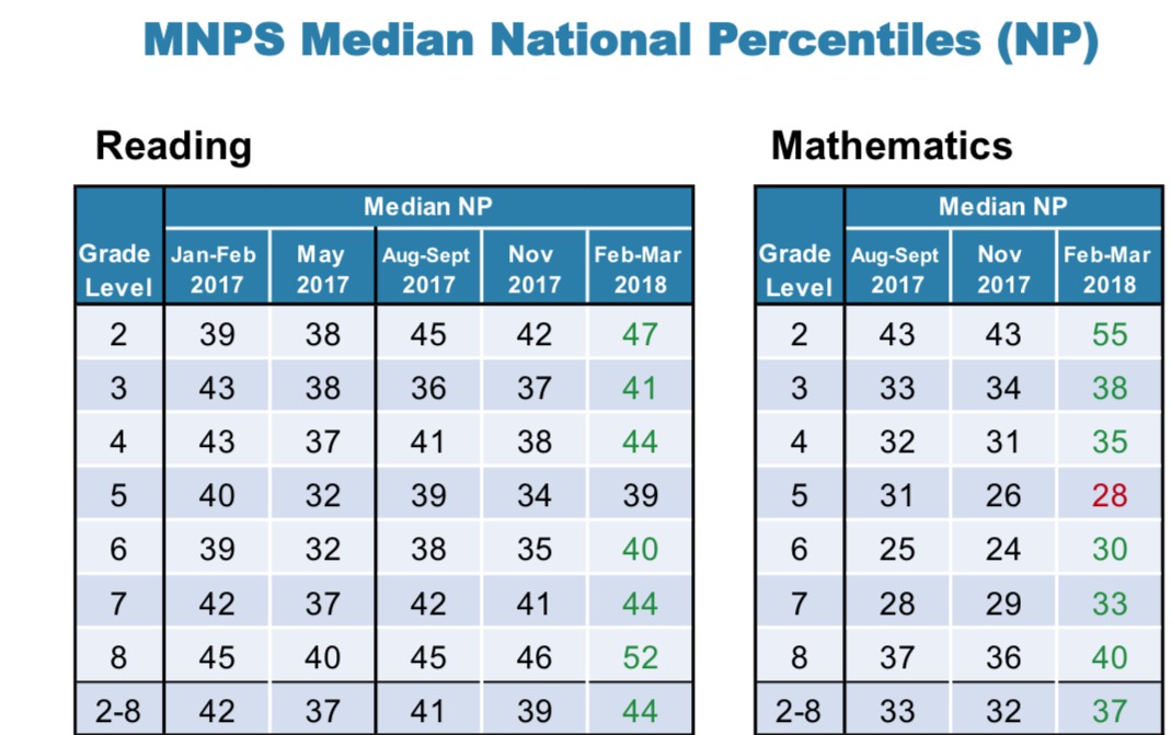 Dr. Joseph is shouting MAP testing results from the roof tops. But again, we are not telling the whole story. First of all, we’ve chosen to completely disregard a whole testing session. Kids took the MAP test in November and scores were down 2%. Those results are no longer part of the conversation as we focus only on September and February testing results. That 2% drop in November was ruled insignificant. February scores are up 3% and being touted as the “highest they’ve ever been in MNPS,” which is not a true statement.