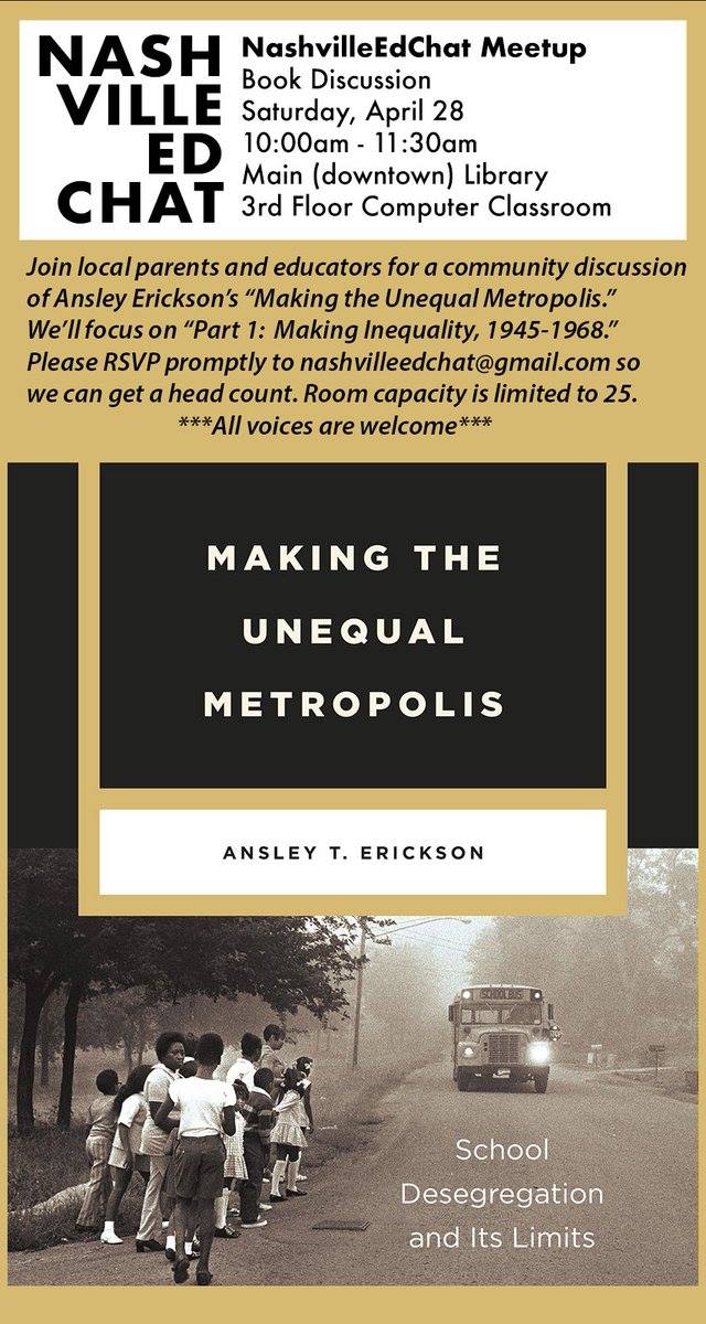 The book talks about the shift to a focus on education as a means for economic outcomes (i.e., vocational schools) as a driver of inequity. This makes me wonder how our emphasis on STEAM is not just a modern day variation of this. It’s always been about increased property values in Nashville. The author cites the creation of homogenous neighborhoods anchored by a neighborhood school as a major driver of segregation. Does the recent movement towards community schools not carry the same inherent risk of recreating that effect?