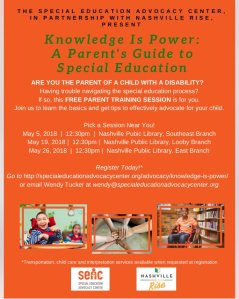 Have a student with a disability or know someone who does? Not sure where to turn? You’re in luck! Sign up to attend a FREE training session to get all the answers you’ve been looking for. To RSVP or for more information click here: