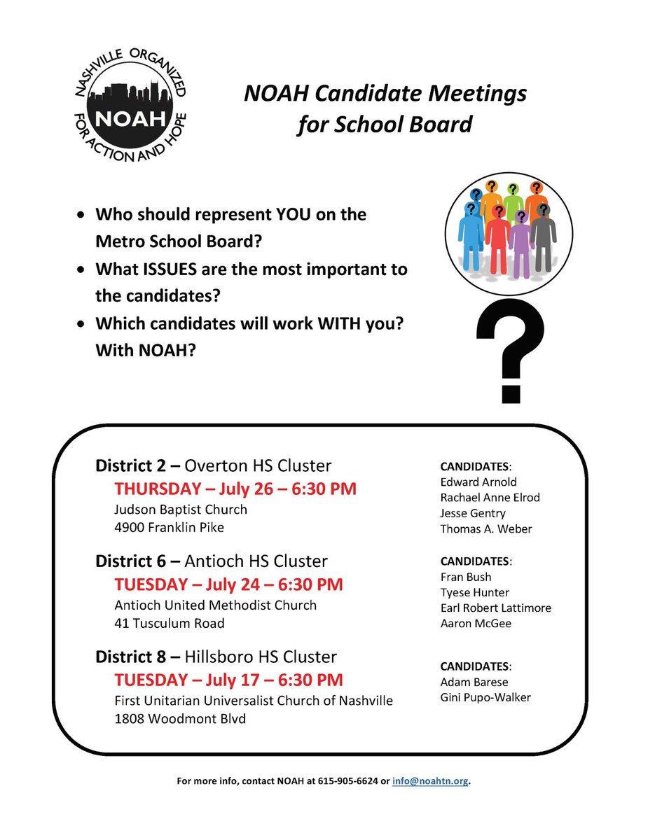 NOAH_Action is facilitating Candidate Meeting for School Board District 6 and 2 this week. Yours truly will be participating on Thursday. This, unfortunately, is one of the few opportunities this election season to see candidates on stage together discussing what matters, the issues. Please take advantage of the opportunity.