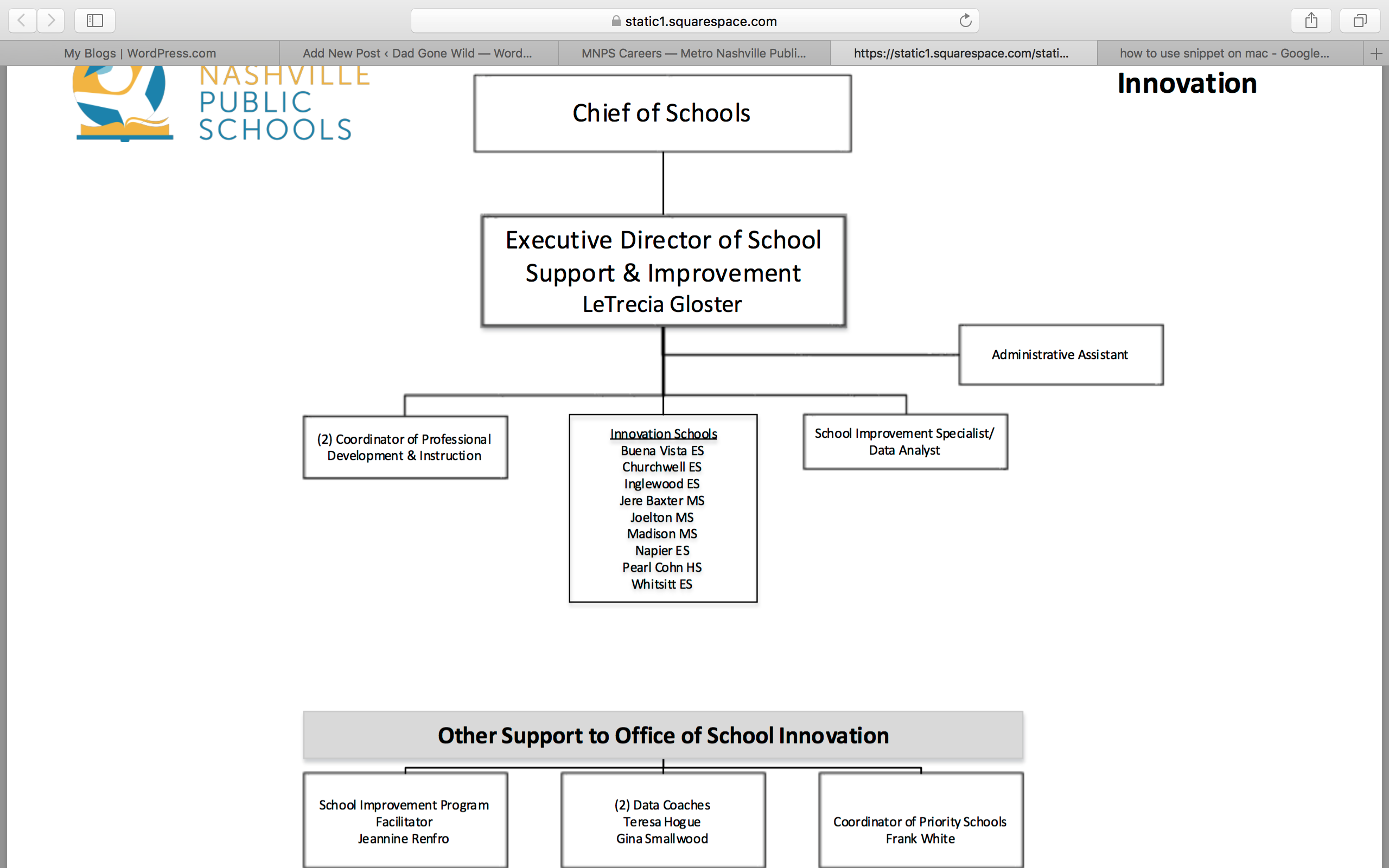 The release of the state priority school list continues to draw closer. The latest I’m hearing is that there are a lot more schools on the list than anticipated. Do you know how many people we have overseeing these schools? Take a look at the organizational chart to the left and tell me if you think that’s enough.