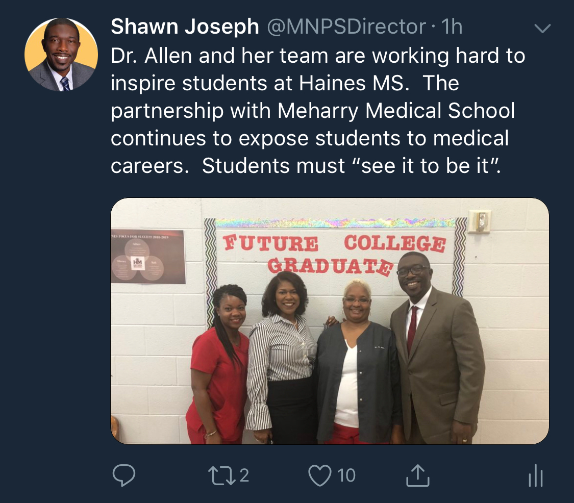 Furthermore, it’s been widely recognized that one of the chief failings of MNPS Director of Schools Shawn Joseph was his to recognize the depth of talent here in Nashville. What better way to rectify that misperception then to pluck one of Nashville’s very own long-term educators. Not like we don’t have a half a bushel to pick from.