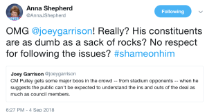 This past week has seen a fair amount of talking out of both sides of their mouth by public officials. First you had former board chair Anna Shepherd being shocked that Russ Pulley thought constituents weren’t smart enough to understand city governance, only to later confirm that she felt that same way about her constituents and school issues.