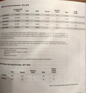 For further evidence of this exclusion, we can look at the districts KPI’s. At the beginning of the year, MNPS created a key performance indicator that focused on the suspension of black students. My question would be why create a KPI focused on a declining population that is trending in the right direction versus an increasing population trending in the wrong direction? Under this KPI a director could be perceived as successful if black student suspension rates diminished even while Hispanic rates grew. It sends a message that our Hispanic students are not as important, and that shouldn’t be acceptable to anyone.