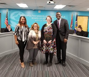 Congratulations to art teacher, Rachel Motta Towne, for being named Tennessee Art Educator of the Year by ! Towne was recognized Tuesday night at the MNPS Board Meeting.