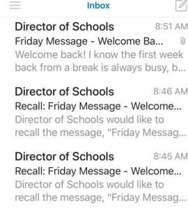 Dr. Joseph sent out a memo today acknowledging the dysfunction of the last board meeting. In his memo he speaks once again to the masks, yet never speaks out about one board member linking another board member to the Klan. Sometimes communication is as much what you don’t say, as is it is what you say. Apparently, it took several tries to get the email right but it’s content still misses the mark. (I know it’s a cheap shot and probably hypocritical, but sometimes I can’t help myself.)