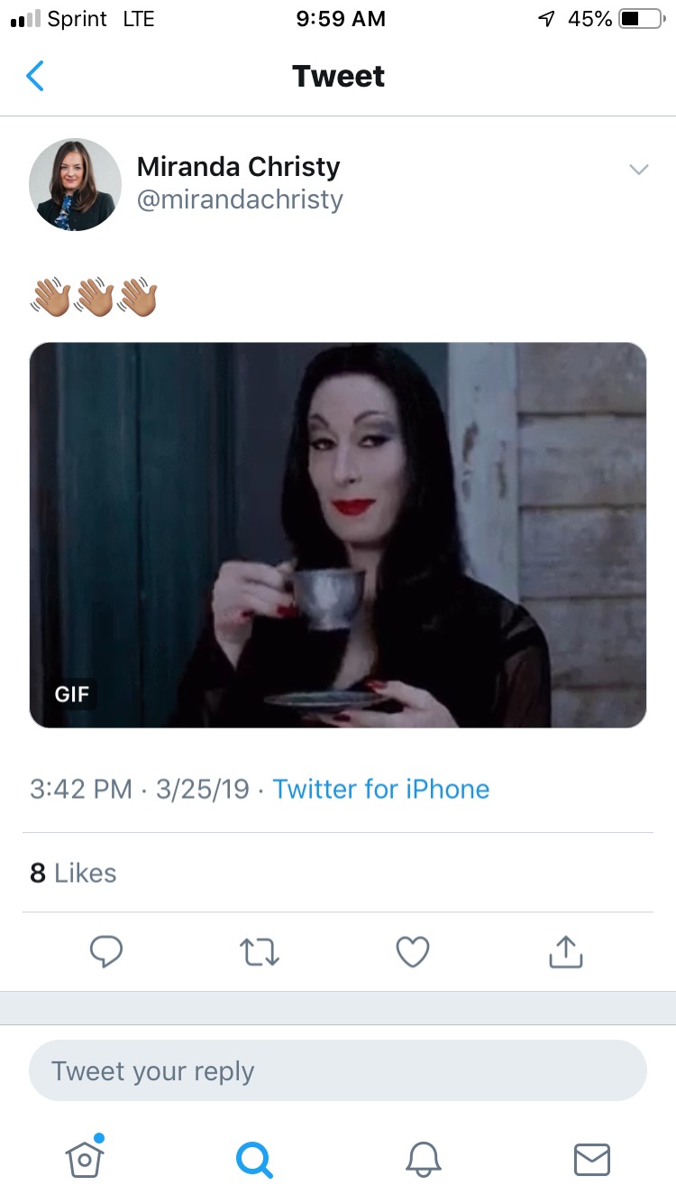 During her run for school board, Pinkston often referred to then-candidate Miranda Christy as Morticia and went out-of-the-way to wreak havoc in both her professional and personal life. Her tweet yesterday offers perfect punctuation on his school board career.