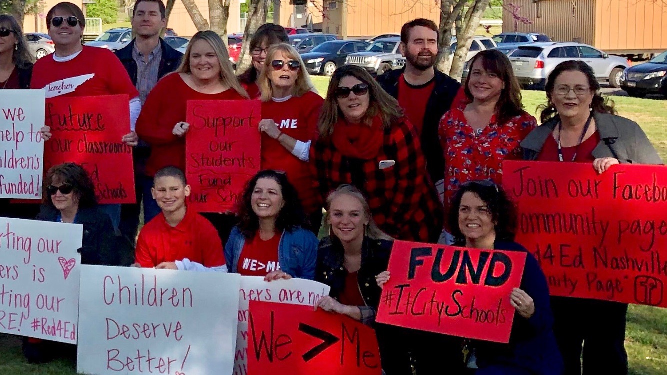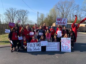 Teachers are already doing their part by staging several walk-ins across the district this week. A walk-in means that teachers and community members are meeting outside of schools before class wearing red to signify Red4Ed and educating others about the need to fully fund our schools. Right before school starts they walk into the building in mass.
