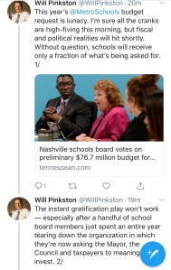 First the good. The board has amended the budget they will present to Mayor David Briley on April 17th. The new budget will include a 10% raise for all MNPS employees and restore step increases for teachers. It will also include funding of $852,000 for so-called “Care Centers” to help with student behavioral needs and $850,000 to add professional development days for para-professionals.