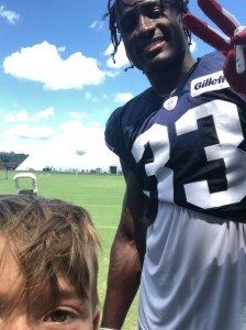 When we said yes, he produced an armband and told us where to meet after practice. At the end of practice, we were escorted on the field with 10 other kids and an individual audience with Titan’s QB Marcus Mariotta was arranged.
