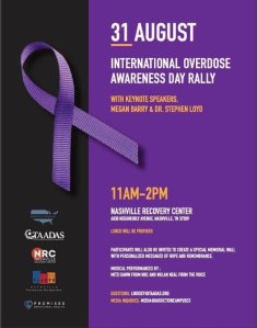 Now for a message from former Mayor Megan Barry…Please join me TOMORROW for International Overdose Awareness Day. Remember the ones we’ve lost – our bothers, sisters, daughters, sons, mothers, dads, husbands and wives. And sons. Let’s stop the shame.