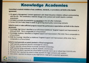 After the consent agenda board took up the issue of closing the Knowledge Academies Charter Schools and the potential ramifications of doing so. The failings of KA are well documented. The vote was an easy one and unanimous. The biggest question was the timeline for closing.