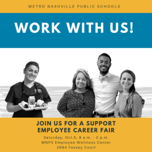 MNPS is hosting a job fair from 8 am. to 2 p.m. Oct. 5 at our Employee Wellness Center, 2694 Fessey Court. Details: ow.ly/tlZY50wsvcw
