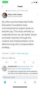 Looks like newly elected Mayor John Cooper was inspired by Penny Schwinn’s recent ASD listening tour or he’s channeling his inner David Briley because he’s committing to – say it with your serious voice – an expert study on teacher pay. This study will supposedly help us understand how we can attract and retain teachers. It’s almost like teachers haven’t been talking for the last 5 years. Once again proposing another study when times call for action. More and more it is starting to feel like Cooper’s version of change is, everybody, stand up and move over 2 seats.