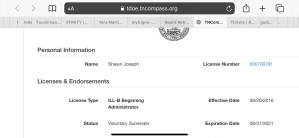 Later this week, I discovered that Dr. Joseph’s educator license had been surrendered. A call to the Tennessee board of education confirmed that he had surrendered the license in December and there was contigency placed on it that his license couldn’t be reinstated until after 15 months. Which indicates that the state board had likely found enough evidence to support charges that would translate to a one year suspension.