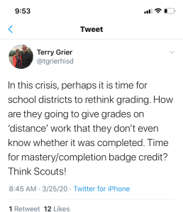 I find this highly problematic on a number of levels. At the very least, depending on how the current lock down plays out, this has the potential to undo years of progress in closing the achievement gap. I’ve already seen social media posts with parents of special needs children expressing resignation that this year will result in their child falling even further behind their classmates. That shouldn’t be acceptable to anyone.