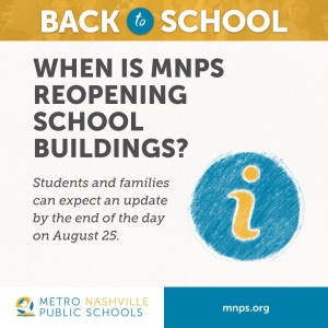 I say ill-thought-out because I can see no benefit to such an announcement, and it only serves to distract. From the beginning, Dr. Battle promised that any plan would be subject to ongoing evaluations and that adjustments would be made as supported by existing data. Furthermore, she pledged to give 2 weeks’ notice before implementing any change. As far as I know, nothing has changed in regard to those promises and so, since the original announcement said MNPS would be all virtual till, at minimum September 8, it could be expected that an update would be soon forthcoming, but until then, the focus should remain on the current path.