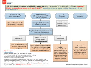 Do parents signing up for a return to school understand the protocol for students exhibiting any of the symptoms related to COVID? You see, the Health Department has a plan and they’ve outlined it with a flow chart. it lists very specific ailments and puts them in the category of high-level or low-level, and then describes a list of actions that will be required for a student to return in the event they exhibit any of those symptoms. It’s clear and concise and provides parental awareness that even though they want their student to have f2f instruction, they could quite possibly be back out almost immediately for 14 days. They can decide if their schedule can adapt to that potential.