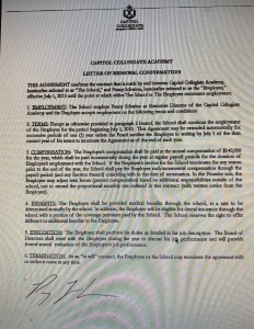 This week we got a little more clarity on our Commissioner’s previous part-time employment. You’ll remember that earlier this year I wrote about her receiving a salary from her California Charter School while being employed in both Delaware and Texas. On Friday through an open records request to Capitol Collegiate Academy, I received what passes for a contract between the school and Ms. Schwinn.
