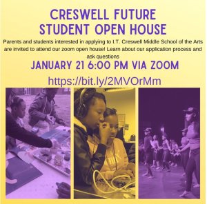 Interested in attending a 5th through 8th grade Fine Arts Middle School next year? Cresswell Fine Arts Magnet is holding an upcoming future student open house. Check it out.