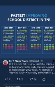 Yesterday, the Tennessean published an article on TCAP scores from last spring with the following claim, “Together, the statewide and district-level test results provide educators and parents a clearer picture of how much pandemic-related learning loss occurred.” That is just not an accurate statement. The tests do no such thing. Sorry, but this is as big of an untruth as that plague our current reality.