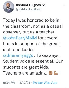 Too much of education policy today is crafted by tourists, people passing through school buildings, and then making authoritative pronouncements. Case in point a tweet this morning by MNPS’s Equity Executive Officer Ashford Hughes.- He wasn’t a teacher.