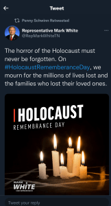 Schwinn is no stranger to social media, in fact, she is a frequent contributor. Often crowing about growing your own programs, approving ESSER applications for funds that were made available last year, to the power of adoption. Even going as far as retweeting close friend RepMark White’s message of Holocaust rememberance.