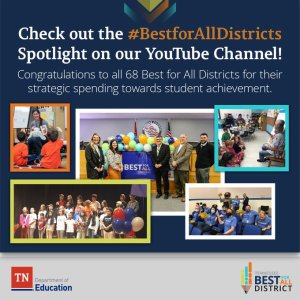 Qualification in Best for All is pretty easy. To qualify for the Best for All recognition program, a district must have planned to spend an amount equal to or more than 50% of its ESSER 3.0 award amount on strategies to raise student academic achievement, as well as opted to participate in the state’s high-dosage, low-ratio tutoring program, TN All Corps, The latter being the secret sauce.