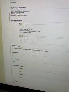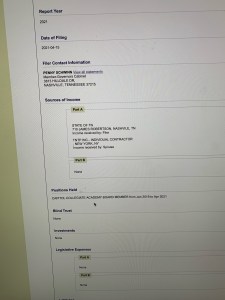 Commissioner Scwinn’s annual ethics reports are always an interesting affair. As required by all members of the Governor’s cabinet, every April she declares a financial sheet that is supposed to list all household income for the previous year. In the past, she listed income from both her charter school in California and her husband’s employer, both are omitted this year. This raises some questions, chief among them being, where is Paul Schwinn employed? Previously he was with TNTP.