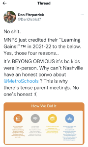 In all honesty does MNPS feel differently than Larry Arnn about their teachers? They give us scripted curriculums and want us to “teach it with fidelity”. Scripted curriculums can be taught by anyone. We have no professional freedoms on how to teach children anymore. Scripted curriculums do not meet every child’s needs and never will. We have kids slipping through the cracks due to these curriculums.