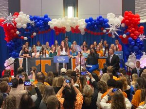 I’m sure both had a speaking role of some sort, as there are pictures, but between Tennessee President Randy Boyd’s questionable fashion choice and Commissioner Schwinn’s Homecoming Queen antics, their words slipped past me.