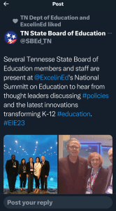 Reports are that over 20 of Tennessee’s education policymakers were in attendance. Including members from the state charter school commission, the state board of education, the TDOE, and the General Assembly. Even a couple Democrat lawmakers took the trip.
