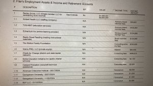 These other businesses that she lists an affiliation with could count on her being confirmed as Deputy Secretary of Education and the influence that comes with that role. So, while no income is currently listed, the future could be bright.